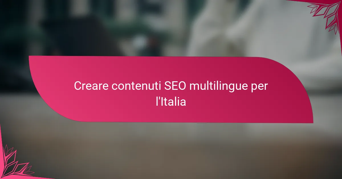 Per ottimizzare il SEO multilingue per il pubblico italiano, concentrati sulla localizzazione dei contenuti e sull’uso di parole chiave appropriate che risuonino con i parlanti italiani. Questo implica comprendere le sfumature culturali e impiegare strategie tecniche come i tag hreflang per migliorare la visibilità nei motori di ricerca.