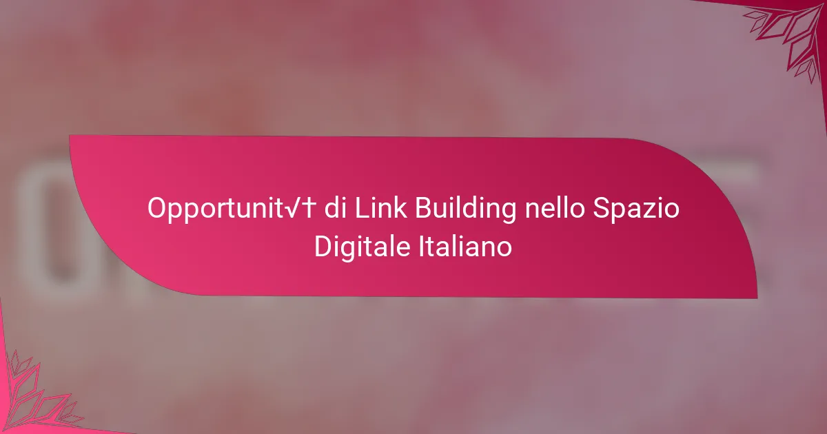 La link building nello spazio digitale italiano richiede un approccio strategico che enfatizzi le connessioni locali e la rilevanza culturale. Sfruttando metodi come il guest blogging, il coinvolgimento con influencer e la creazione di contenuti localizzati, le aziende possono scoprire backlink preziosi che migliorano la loro autorità e visibilità. Analizzare i concorrenti locali e utilizzare strumenti SEO sono passi essenziali per identificare queste opportunità, garantendo una forte presenza nel mercato italiano.