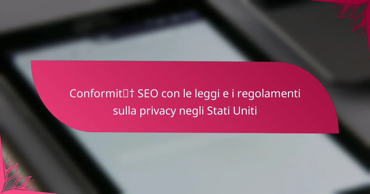 Nell’attuale panorama digitale, la conformità alle leggi sulla privacy statunitensi è essenziale per pratiche SEO efficaci. Regolamenti chiave come il California Consumer Privacy Act (CCPA) e il Children’s Online Privacy Protection Act (COPPA) impongono requisiti specifici alle aziende per proteggere i dati degli utenti. Implementando misure di protezione dei dati solide e rimanendo informate su queste leggi, le organizzazioni possono migliorare la loro presenza online salvaguardando i diritti dei consumatori.